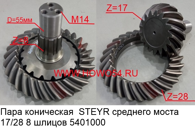 Пара коническая STEYR среднего моста 17:28 8зуб 99014320125 (01000)